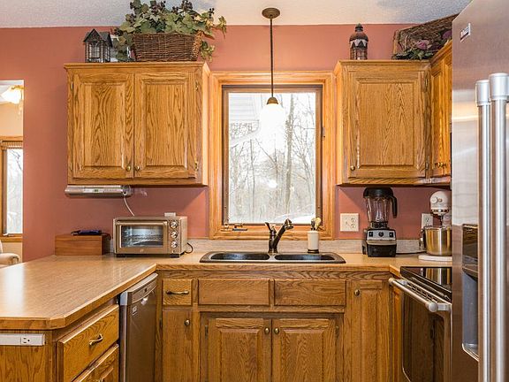One level living on wooded acreage! Heated, oversized garage. Geo-thermal heat saves tons of money! Avg htg bill is $67/mo, Avg cooling bill is $8/mo. Maint free deck, concrete driveway. Extra kitchen in LL - perfect for entertaining. Vaulted ceilings. New roof 2015 w/transferable lifetime warranty. New hickory hardwood floors & porcelain tile. New SS appl. Fenced yard.