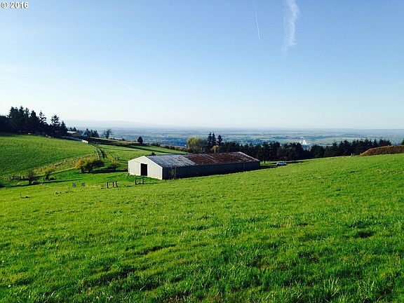 12.6 acres w/beautiful valley views in the heart of Oregon Wine Country! Private w/easy access off of Mountain Top Rd. Located approx 10 min from downtown Newberg & Sherwood. Just 35 min to Portland! Southeast facing w/gentle slope. Two fenced pastures currently used for hay production. Large pole barn, power available, new 25gpm well in 2013 & previous septic approval. Zoned for agriculture/forestry. Buyer to do own due diligence.