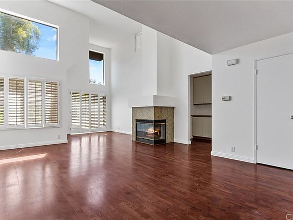 This open and bright two story condo offers value beyond the asking price. Walk through your front door into your living area with 15 foot high ceilings and 3 large windows allowing natural light into your home. The main level has hardwood flooring, a marble gas fireplace and is an open space that includes the living room, dining area and kitchen that functions ideally for entertaining on special occasions or just every day life. A sliding door from your living room leads you out to your large outdoor patio. Also on the main level is the first bedroom that is capable of fitting a queen bed comfortably, has a walk in closet along with a sliding door leading onto your large outdoor space as well. A washer and dryer is located in the kitchen, a full bathroom is located in the short hallway to complete everything you need. On the upper level is the second bedroom equal in size with a bathroom attached. This home includes plantation shutters on windows throughout the home, central A/C, fresh new paint, one car garage, 2 more additional parking spaces, community pool and a special bonus pass to the Mission Viejo lake amenities. You will have access to the lake's shore, fishing, boating, summer concerts, etc. Nearby hiking trails, easy access to the 241 toll road, great shopping is all just around the corner and only 15 minutes away is the Irvine Spectrum and/or the in development Village at Laguna Hills. More pics and virtual tour coming soon before we go active.