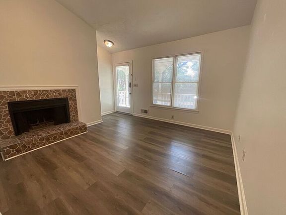 This 3-bedroom, 2-bathroom home offers comfort and convenience in a well-maintained quadplex. Enjoy off-street parking and a shared covered front porch for a welcoming entrance. Out back, relax or entertain on your own deck. Inside, the home features durable LVP flooring throughout and a spacious living room highlighted by a cozy fireplace. The kitchen boasts stainless steel appliances, dark cabinetry, and flows seamlessly into the dining area with direct access to the back deck. The bedrooms are generously sized with ample closet space, while the bathrooms include stand-up showers for modern convenience. With its practical layout, stylish finishes, and private outdoor space, this home is a great find in a convenient Conyers location.
