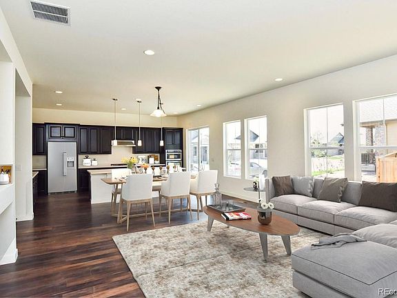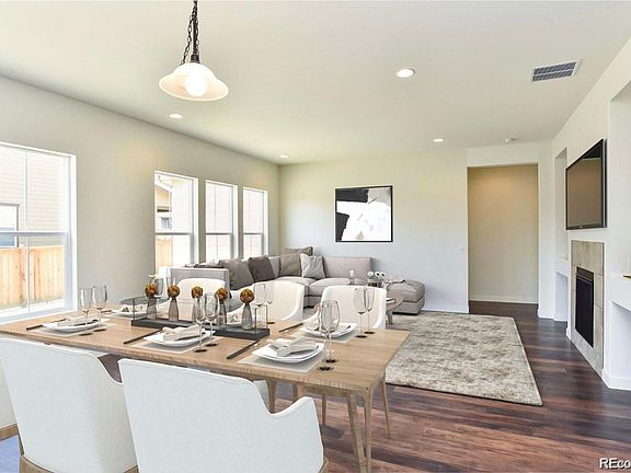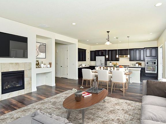 This spacious Ranch is built to impress! With an open floor-plan and 10’ ceilings, the natural light is abundant. Two bedrooms and a study/den with double French doors are located on the main floor. Enjoy a grand great room, adjacent to a breathtaking kitchen – this gourmet kitchen has a luxurious feel with a gas cooktop and Corian countertops, laminate flooring, SS appliances, built-in wall oven and microwave, and a large kitchen island. The openness of this home continues into the primary suite that has a 5-piece primary bath and an extra-large closet. All rooms are pre-wired for ceiling fans. Enjoy the full, finished basement with 9' ceilings that includes a wet bar, a massive recreation room, and 2 additional storage areas. The generously-sized, 3rd bedroom and a bathroom with a walk-in shower is located in the basement. Home boasts a spacious 3-car garage! Easy care, water-saving turf is installed in the backyard. Great location – 2 minute drive to the Larkridge Shopping Center, easy access to I-25 and E-470. Adams 12 5 star school district. Low HOA fee. Energy star certified home. Community has a 5-acre park and miles of trails. Don’t let this rare opportunity pass you by!
