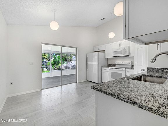 Incredibly located, just a short walk to the river, close to the King Center and Eastern Florida State College, this home was built in 2001 and recently updated. Some of the many things done in 2023 include new tile floors and carpet, newly installed roof, freshly painted inside and out, new kitchen cabinets and granite tops and light fixtures. The water heater is just weeks old. This amazing 3-bedroom, 2 bath home, features a two-car garage, screened porch, and a private back yard. Ready to move right in, you'll be amazed at how wonderful and beautiful this home is both inside and out. If you only see one home this fall, this is it....