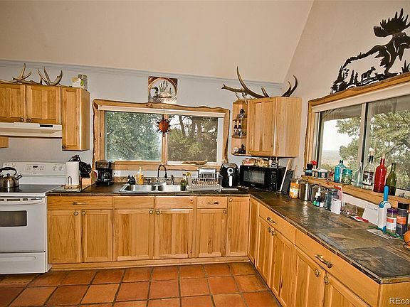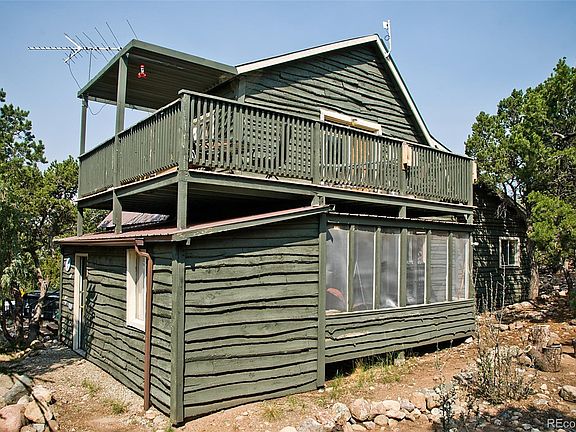 This charming A frame home, sits on one consolidated, fenced acre, nestled in the trees and boasts incredible panoramic vistas of the Sangre De Cristo mountains along with the expansive San Luis Valley from the upper deck. Offering 2 Bedrooms, one and a half baths along with a home office space and screened in porch, this home is ideal for working from home or as your sweet mountain cabin retreat. Grow your own food in the greenhouse and enjoy plentiful storage with the large pantry, attached workshop, crawl space and below deck storage. The open plan living space with high vaulted ceilings create a bright and airy feel. The custom pecan wood cupboards accentuate the country style kitchen and the wide stepped, solid wooden stairs lead you to the beautiful loft bedroom, with adjoining bathroom and access to the upper deck where you can drink in the stunning sunrise over the mountains. At this price point, in this ideal location, this home won't be available for long, so call today to set up your viewing.