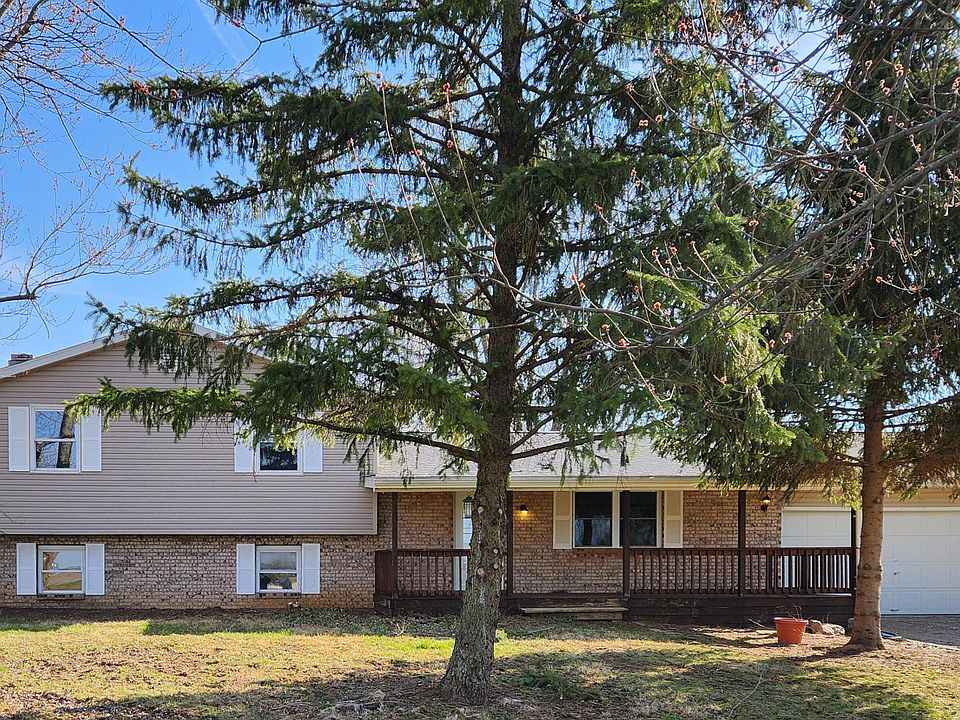 Move-in ready! Don't miss this beautiful updated home! Tucked back off the road, you will drive up to the two car garage. There is also another spacious detached garage, which has new windows, new roof, gas hook up and a new garage door opener. The charm of this home even becomes more apparent when you step onto the large covered front porch. A great place to relax and enjoy the evening sunsets. As you step into the front door you are immediately thinking WOW! The first floor living area has new vinyl flooring, fresh paint, and new lighting. Totally remodeled half bath. The kitchen offers new gorgeous white cabinets with island, recessed lighting, garbage disposal and dishwasher. It also provides plenty of room for family dining. Downstairs is a huge family room with a beautiful multicolored brick fireplace leading to the unique nook bar with new wall lighting, recessed lighting, and carpet. In the utility room you will see the updated laundry area with new sump and new high efficiency furnace. Upstairs you find three freshly painted bedrooms with new carpet, new ceiling fans and new interior doors. The master bedroom has enough room for a sitting area, also has two closets and private access to an updated full bath with a closet. There is a nice fenced in backyard with covered concrete patio and hot tub hook up. This home is also all under a new roof, has new smoke detectors, new gates on the front fence and has central air. Another positive about this property is its location, minutes to I-70 for easy access to Columbus and Dayton areas. MUST SEE!