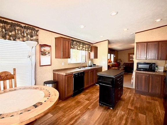 Come home to Paradise!! This 3/2 mobile is in immaculate condition with all of the amenities. Fully furnished kitchen with dining area. Large living area, split bedroom arrangement. Outside you have 2 storage buildings. a pad to park your RV, all on 1.9 manicured acres. This is truly one of the prettiest properties in the area.