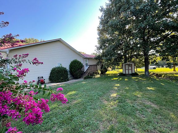 - Features Exterior: Large Trees, Porch Covered, Deck, Landscaped, Workshop Area, Asphalt Parking, Shed, Garage Door Opener
