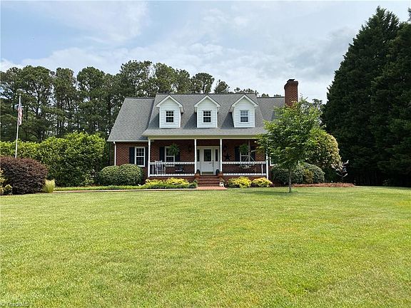 Stunning! Immaculately maintained! Sitting on 2 acres! This stately brick cape cod in a great King location is looking for its next owners. No detail overlooked. The front porch is ready for rocking chairs and porch swing. The living room has beautiful engineered hardwoods and gas logs. There is a formal dining space just off the living room. The kitchen overlooks the backyard and has a bar for eat-in option. You'll find the master suite on the main floor. Master bath has just been updated and includes heated floors and soaking tub. Upstairs you will find two generously sized bedrooms with excellent closet space. Each bedroom even has a built-in desk. There is a full bath on the upper floor. Large bonus room with wet bar creates an upper level additional hangout space. So many possibilities! The unfinished basement is plumbed for additional bathroom if decided to add. Backyard is an oasis with private back deck and firepit. Beautifully landscaped! Carport set up for large RV storage.