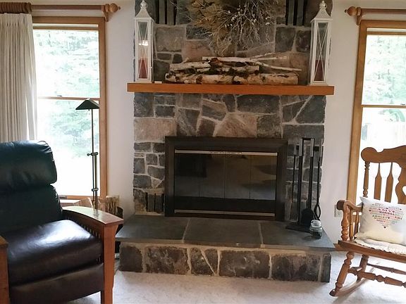 Beautiful contemporary on 20 acres in the Adirondack Mountains. Extremely well maintained home, with all modern features. Gorgeous floor to ceiling fireplace. Master suite, laundry on first floor. Huge basement storage, walk in attic storage, 2 car garage, shed. Close to snow machine trail, ski area, lakes, hiking & snowshoe trail. Roof 2013, Furnace 2015, Septic 2010, Siding 2002, Appliances 2014, Carpet 2005. Acres were logged apprx 15 yrs ago. Pretty landscaping with apple tree, berry bushes.