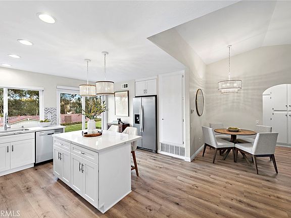 Welcome Home to this beautifully remodeled 2 bedroom +1 bathroom single story stunner located in the coveted and guard gated 55+ community of Casa Del Sol, Mission Viejo! Perched high above the rest showcasing front row sunset views and coastal breezes, this stunner has been newly renovated with exceptional craftsmanship. Light and bright and full of sunlight, enter into a wide open floor plan with brand new designer luxury vinyl flooring throughout. New Dual Pane windows frame the beautifully remodeled kitchen inclusive of custom white shaker cabinetry and quartz counters, ample storage and NEW stainless steel appliances, new sink, faucet, recessed lighting and beautiful pendants over the large kitchen island. Walk out to your back yard patio through NEW sliding doors to dine alfresco and enjoy forever views. The oversized living room showcases vaulted ceilings, plantation shutters and a cozy fireplace adorned with designer tile all the way to the ceiling. The extra wide hallways include ample built ins for more storage along with the entrances to the oversized master bedroom with walk in closet and secondary bedroom with upgraded mirrored sliding doors and plantation shutters. The completely remodeled bathroom includes an oversized walk in shower with beautiful golden hue porcelain slab upgrades. Additional Features include new PEX plumbing, NEW custom paint, Recessed lighting, NEW water heater, oversized tandom garage and custom tiled front patio.