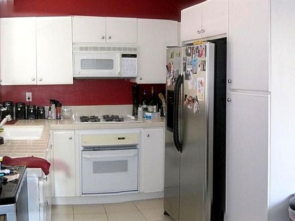 Santa Clarita home for sale located in the Court Home Collection, just off of McBean Parkway and Skycrest Circle in Northpark Valencia. This condo features carpet, tile and pergo flooring. The kitchen boasts white appliances, plenty of cabinet space and opens up to the dining area and living room. The living room offers a cozy fireplace and a slider leading to the backyard. The master bedroom features mirrored sliding wardrobe doors and opens up to an ensuite bathroom that offers dual vanities and a shower over tub. The secondary upstairs bedroom features sliding wardrobe doors. The backyard offers a brick and concrete hardscape and retaining wall with plants. Community pool and basketball court amenities.