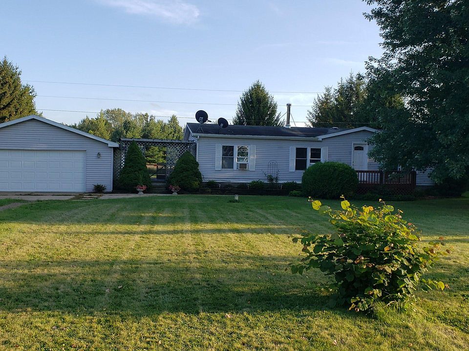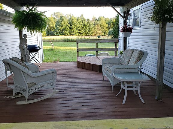 Beautiful 4 acre parcel with awesome camping/party area complete with power on Little Portage Creek in Mendon. This 3 bedroom 2 bath home has been completely redone from top to bottom. Seller installed gorgeous hardwood floors through out. New hickory cabinets in the kitchen along with a center island with butcher block top. All new stainless appliances. New furnace and so much more. Huge over sized 2 car garage with work shop and a great covered pergola to enjoy nature and the wildlife. Awesome bow hunting on this property. See all the deer in the last picture. See attached list for all work done. This is a must see.
