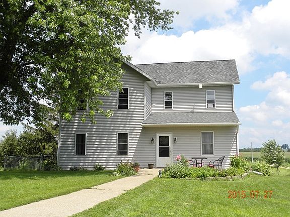 2 story, 3 bedroom home on 8 acres. Updated kitchen and bath, new furnace, roof, & windows. Outbuildings: 2 corn cribs, metal bldg with horse stall, 2 small bldgs, 2 grain bins. 5 acres currently planted with hay. Pastures are horse/cattle ready. Mature & young trees. Lots of perennials & herbs & some fruit trees. Only 10 minutes from town.