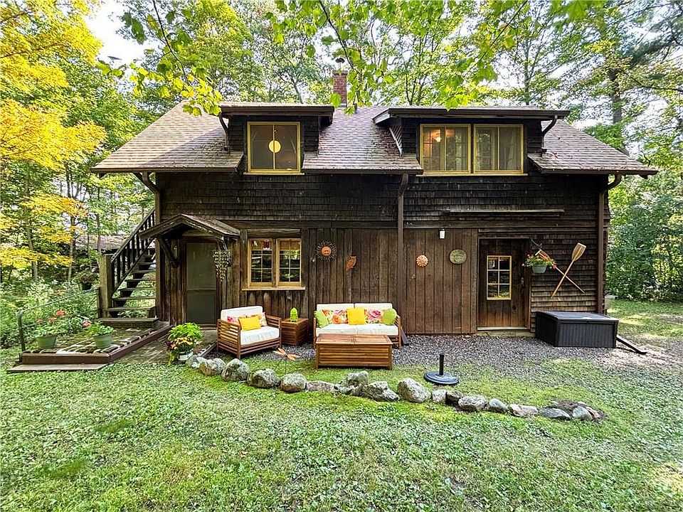 Your Northwoods lake escape awaits! Tucked away on 5.4 private acres with over 650 feet of frontage on Red Cedar Lake, this 1940?s rustic cottage offers the perfect blend of charm, character, and tranquility. Inside, you?ll love the warmth of the original wood floors, a cozy main level with a sitting room, dining nook, and galley kitchen, plus two upstairs bedrooms that share a bath. Step outside and enjoy the peace of your wooded surroundings, with a gentle trail leading down to the dock and quiet shoreline?ideal for swimming, boating, or simply soaking in the views. Recent updates include roof and gutters by Westphal?s Roofing, giving peace of mind. Best enjoyed as a three-season retreat, this property captures the magic of simpler times while offering endless opportunities to relax, recharge, and make memories at the lake.