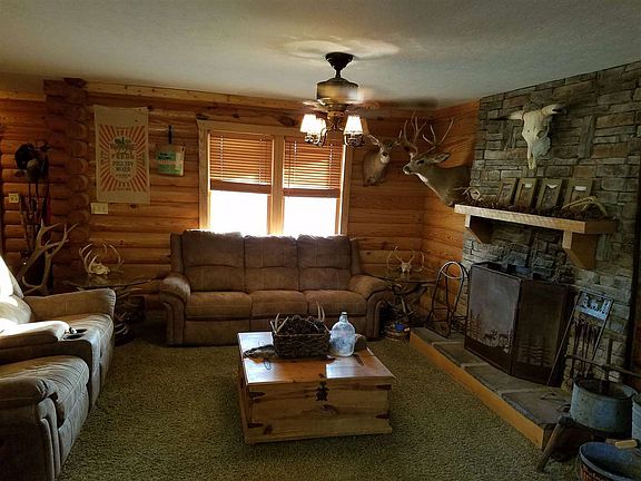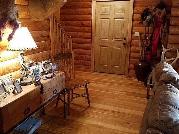 Panoramic Views from this custom home on approximately 8 acres! Rustic charm thru out, generous room sizes w/beautiful hickory hardwood flooring, new carpeting and new paint. 1st floor master suite and 1st floor laundry availability! Country kitchen and beautiful hickory cabinets and flooring, stainless steel appliances, pantry, counter bar w/custom stonework and Corian counter tops. Storage Galore! Security system and surround sound equipment in place but not in use. Lg rear deck w/above ground pool and hot tub! Plenty of privacy! Laundry currently in basement or 1st floor in kitchen closet.