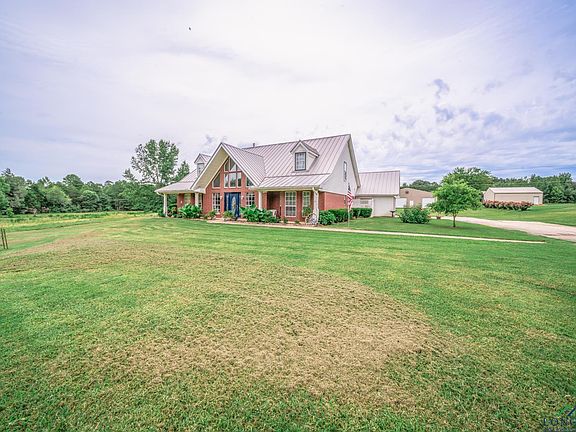 Come relax in your country home only minutes from town. Custom brick home in Hallsville ISD sitting on 8+ acres with a pond, creek, and some fencing. The owner has updated the kitchen and master bath. The home features a metal roof, a large covered back porch, hard-surfaced countertops, and generously sized walk-in closets. A commercial-grade, metal framed shop with electric, spray foam insulation, bay doors, and overhang is sure to meet your storage needs.