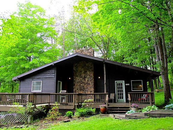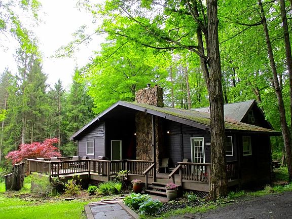 Completely private home surrounded by woods and nature located only 11 miles to downtown Ithaca. Set far, far back from the road along a tree lined driveway. Wake up to song birds, and fall asleep to the lull of crickets. Large entry open to livingrm with soaring stone fireplace. Vast open floorplan includes livingrm, diningrm, kitchen, cathedral ceiling, skylight. Enjoy mountain views from front deck. Lower walkout offers potential for guest suite. Only the forest fauna will be watching as you soak away your cares in fab hot tub. Stream in woods. Cable w/Internet. S. Hill elementary school.