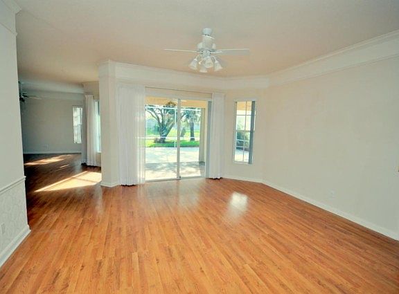 Stunning DiVosta built, lakefront 4 bedroom plus den, 3 bath, 2 car garage home on deep lot in the luxurious, waterfront, gated, resort style community of Riverwalk! As you enter this home you will be wowed by the volume ceilings, crown molding and beautiful laminate flooring throughout the spacious living areas along with the expansive lake views! Home features a spacious living room and beautiful formal dining room. The kitchen features updated appliances and opens up to a very spacious family room which makes the home perfect for entertaining. The master bedroom is very spacious, has a slider which leads to the patio and offers beautiful views of the large backyard and lake. The master bathroom has a wonderful layout, luxurious jetted tub and separate shower.