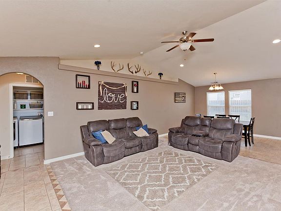 Come see this 3 bedroom, 2 bathroom rancher in a great cul-de-sac location. Big open living space with vaulted ceilings and kitchen! Bedrooms are split floor plan with lots of room. Air conditioning and forced heat in this stucco 2008 build. Privacy fenced yard with irrigation water available for the sprinklers. Great size 2 car garage for cars or storage! Come see this house today!