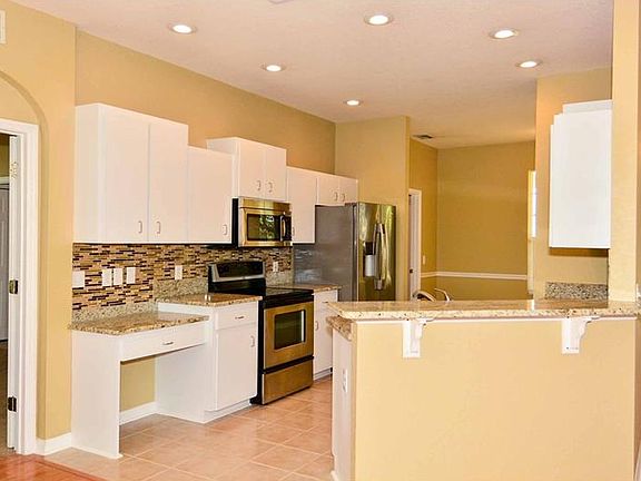 Located on a large corner lot in the Highlands Ridge gated community this gorgeous pool home is ready for you to bring your boxes and furniture. Pulling up to the house you'll first notice the large manicured sodded front yard, beautiful landscaping and the freshly painted exterior. Inside the upgrades continue with granite counter tops, soft closing cabinet doors, stainless steel appliances, beautiful mosaic backsplash, full interior paint, new carpet and even new blinds! In the over-sized mastersuite there is a jetted garden tub, stand up shower stall and dual sinks. The fully screened lanai and pool area seems to be the perfect spot for entertaining or unwinding from a long day. Outside of the lanai you will love the large fenced in back yard which is just part of the nearly third of an acre lot. Come tour this home today, it may end your search for the perfect home! Home qualifies for 100% financing through USDA as well as the First Time Home Buyers Program.