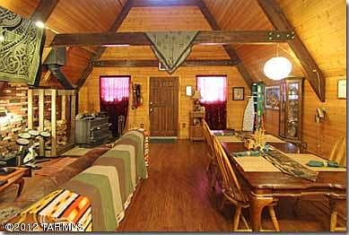 This charming Kachina Village A-frame has a very open floor plan & is perfect for seasonal or year round use. T&G walls & ceilings throughout give you a true cabin feel. Downstairs you'll find a bright & open floor plan with high ceilings, a bedroom and a bathroom. Upstairs is the second loft bedroom. This home features plenty of newer upgrades- flooring, cabinets, plumbing fixtures, dishwasher & water heater to name a few. Outside offers plenty of potential for gardens with some raised beds ready for you to plant in. Enjoy the cabin in the woods from either of the two decks. This 1,153 sq. ft. home is situated on an 8,182 sq. ft. lot and is ready for you to make it your home.