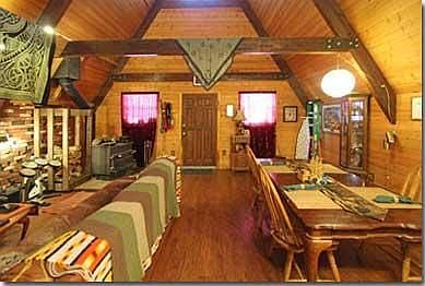 This charming Kachina Village A-frame has a very open floor plan & is perfect for seasonal or year round use. T&G walls & ceilings throughout give you a true cabin feel. Downstairs you'll find a bright & open floor plan with high ceilings, a bedroom and a bathroom. Upstairs is the second loft bedroom. This home features plenty of newer upgrades- flooring, cabinets, plumbing fixtures, dishwasher & water heater to name a few. Outside offers plenty of potential for gardens with some raised beds rea