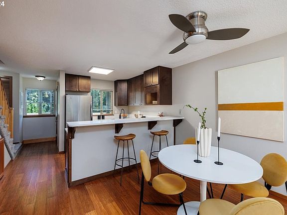Amazing value for this townhouse style condo in Old Forestry Commons! Just blocks to the entrance of Forest Park - close proximity to NW 23rd, Wallace Park. This updated townhouse has all the amenities - open kitchen/living space with gas fireplace, eating bar in kitchen and private balcony off the living room. Upstairs has two bedrooms, a full bath and washer and dryer for convenience. Upgrades include newer gas furnace and AC unit with air cleaner, fresh paint, bamboo flooring. This unit has natural light throughout the unit, tree views, and great privacy- plus the convenience of being located in one of the best spots in NW! This well managed complex provides amenities including Gazebo, firepit, dog walking area, mature landscaping including certified backyard habitat and guest parking. Carport included with unit. Exceptional value for this top floor unit!