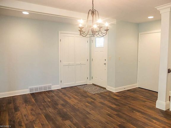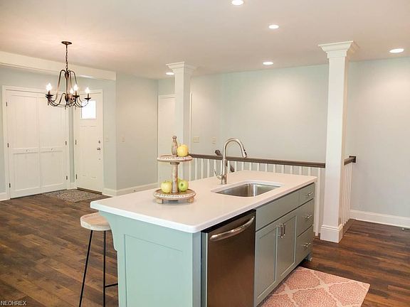 Modern charm in this 3 bedroom, 2 full bath all brick ranch with a finished lower level! Open floor plan. Beautifully renovated custom kitchen offers a center island with breakfast bar, solid surface countertops, stainless steel appliances, tile backsplash and new soft close cabinets! Kitchen is open to the dining room and the sun-filled living room with a fireplace. The master suite has a remodeled, private full bath with tile flooring and a new vanity. There are 2 additional bedrooms and an updated full bath with tile flooring and a dual sink vanity. The finished lower level boasts a rec room with fireplace, a super clean storage room and glass block windows. There's a 2-car attached garage PLUS an additional 23x20 garage with 10-foot door and separate drive. On nearly an acre with a covered back patio! Come see all this home has to offer!