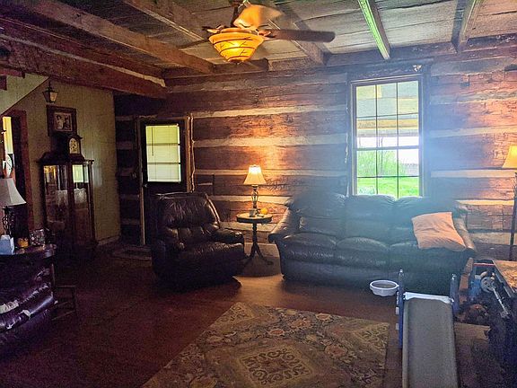This home is rich in history! It is actually two log cabins, reportedly built in the late 1700's by the Babb brothers that fought in the Revolutionary War. Decades later, it was moved onto the property using mules and logs to transport it. Located along the Trail of Tears. Features: new natural gas H&A central unit, new metal roof, tankless hot water, new well pump & pressure tank, almost 5 acres, pond, barn with 2 side openings for parking implements, fencing, plenty of pasture and garden space, 2 mature pecan trees, fruit trees, tame blackberries, and a shed with chain link fencing. Seller is in the process of remodeling, and has neared completion. All plumbing upgraded & most electrical.