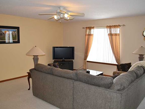 Meticulously-maintained, move-in ready condo! This end-unit condo offers lot of privacy with its own entry and 2 stall attached garage. Enter through the beautiful 2 story foyer with lots of natural light. Large main level living room with lots of room for entertaining. Kitchen with oak cabinets, lots of counter space, and all appliances included. Dining area just off the kitchen with sliders to the deck. Main level half bath just off the foyer. Upstairs you'll find a master bedroom with vaulted ceilings, another bedroom, a full bath, a laundry closet and a spacious loft area. Finished lower level features a rec room, bedroom, and lots of storage space. New roof in 2009, new AC in 2008, new water heater in 2010, new high-efficiency furnace in 2011. Custom wood blinds in lower level and foyer. Washer and dryer included.