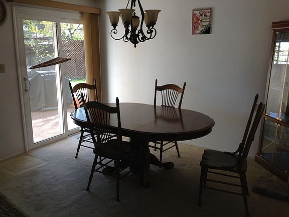 4 bedroom, 2 bath home with vinyl siding. Quiet neighborhood with serenity in your fenced back yard. Trellis w/swing. Garden and large deck and large patio area perfect for a picnic table or even hot tub. New stove & refrigerator. W/D included. Double insulation in attic, extra insulation btw original wall and vinyl siding keep home warm in winter and cool in summer. Central air. Solar panels for water help to keep electric bills at bay. Sprinkler system intact front and back yard. Automatic retractable awning covers large deck area. Extra parking a plus. Close to schools. Home is clean and neat.