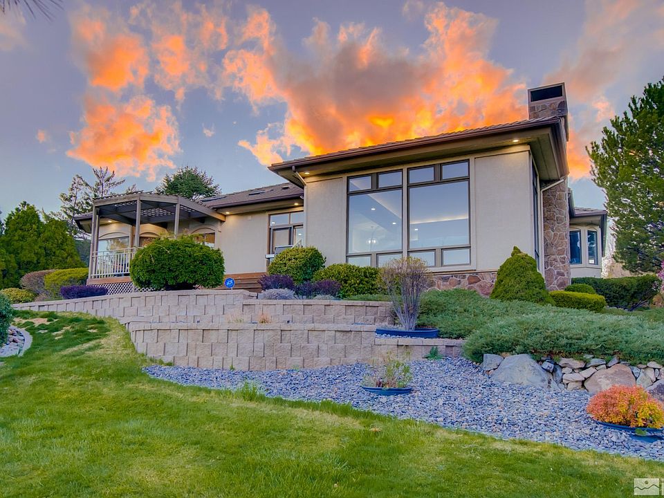 BRAND NEW TOTAL REMODEL! Private location in the heart of Lake Ridge Shores! Situated within 24-hour manned security gates with private lake, this high quality custom home has golf course frontage. An excellent location with phenomenal views overlooking Lake Ridge Golf course. Home includes a golf cart garage with a driveway with direct access to the golf course! AGENTS: Showings to begin on Saturday, 5/14. The exterior of the home is currently being painted, including painting/staining of the trim, garage doors, and deck. NEW LVP Flooring, Tile, Carpet, Plumbing Fixtures, Exterior Lighting, Light Fixtures, Door Hardware, Appliances, Paint, Cabinets, Vanity Mirrors, Baseboards, Door Trim, Window Trim, Shower Doors, Garbage Disposals, Closet Doors, Electrical Switches, & Electrical Outlets. This is possibly the most desirable part of Reno, you are in the Goldilocks Zone with access to Renos premiere shopping, dining and entertainment within 15 minutes or less. This is also a very bike-friendly part of town for those who prefer to pedal or walk. Mature trees and charming vintage architecture abound.