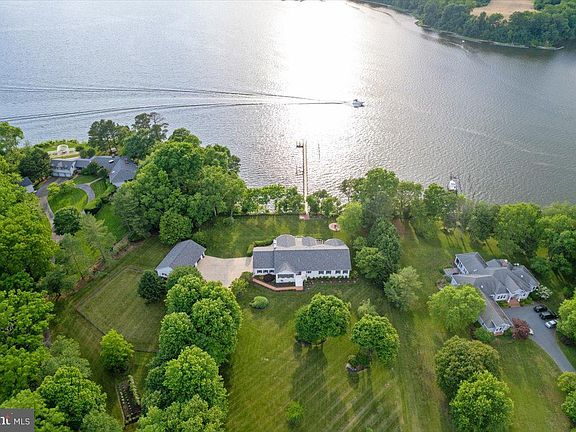 SPOUT FARM ON THE PATUXENT RIVER AND ST. LEONARD CREEK. Discover the epitome of luxury living at this breathtaking 2.76-acre waterfront estate in the Spout Farm community. This lot is situated to offer magical sunsets over the Patuxent River with Jefferson Patterson Park as a backdrop. A sprawling, all-brick 8,000 SF contemporary delivers an expansive open floor plan with the most beautiful hardwood floors, volume ceilings, perfect natural light, and ideal gathering spaces. Arrive down a long tree lined drive to an incredible great room - a lasting first impression. You’ll be drawn to the grand kitchen with a very large prep and cook island, an induction cooktop and built-in double oven, a dining space with room for those special gatherings, and multi-zone living spaces with the first of two brick fireplaces. The primary suite offers garden and sunset views over the water with a gentle flow between sleep, lounge, and a deluxe bath with a heated floor and towel rack. Exciting for visitors, the finished lower level with a separate entrance includes another full kitchen, 2BR/2BA, a large brick fireplace, more expansive living spaces, and creek views. More important features include the private pier with 8000LB boat lift, two geothermal systems + commercial water heater for the ultimate in heat-cool system efficiencies, vaulted ceilings with skylights in just the right places, laundry service on each level, a deck with multiple zones for the ultimate in outdoor living space. Your imagination will run wild with ideas about designing your new indoor-outdoor lifestyle connection. Two impressive executive-sized offices + Xfinity high-speed internet access allow for complete work-from-home options or perhaps studio spaces. Customize your outdoor space with two potential locations for an in-ground pool, demonstrated on a concept site plan. Bring your toys and collectibles to the 35 x 50 detached garage with multiple uses. This building and the attached 800SF+ garage add significant space for vehicles & boats, storage, and a workshop. The home has been recently upgraded and updated with smart home features, architectural shingles rated for 125 MPH winds, and a security system. The BAT septic system is updated for environmentally friendly and efficient waste management. This estate is a rare find, offering luxury, privacy, and convenience in one of the most desirable waterfront locations. The lawn and gardens are spectacular…established with flowers, shrubs, herbs and berries, fruit and fig. A large, fenced area exists for the pups. DON’T MISS IT!