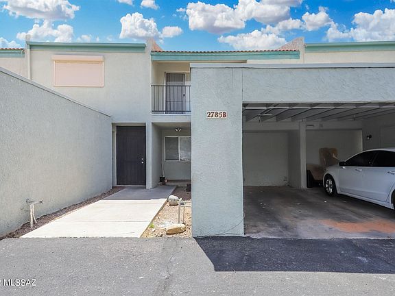 Located just minutes from some of the best destination spots Tucson has to offer, including the University of Arizona, Pima College, and multiple downtown attractions, this Haven Ridge 3br/2.5ba townhouse is seeking new owners and is move in ready. Featuring new carpet throughout, granite counters in the kitchen and bathrooms, open living space with formal dining area. Primary bedroom has its own balcony with beautiful sunset views. Private backyard with natural desert behind, one covered and one uncovered parking space. Amenities include two community pools, basketball court, clubhouse, and water is included! This one just makes sense, come see for yourself!