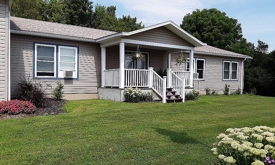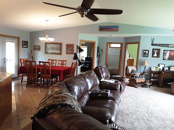 Custom built Ranch Home - 3 bedroom, and 2 bathrooms with laundry/mud-room on main level, with walk-out unfinished dry basement on 3.6 acres on a corner lot. This home has an open floor plan with vaulted 12 ft ceilings, oak doors & oak trim, ceramic tile and wall-to-wall carpet. Custom, solid oak kitchen with granite countertops & backsplash. Stainless steel refrigerator, propane gas range, micro-hood, beverage refrigerator & dishwasher. Propane-powered radiant floor heat & tankless water heater. Wood burner. 16' X 8' covered front porch & 24' X 12' covered deck. 64' x 30' huge, divided garage. Recently serviced water well with excellent drinking water.