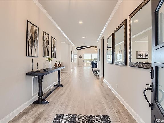 Welcome to 27851 E Lakeview Dr! Ranch style homes this size don’t become available often. This exceptional 4-bedroom, 3-bathroom home offers luxurious living with an array of custom features and modern amenities. Step inside to a stunning living room highlighted by soaring 10-foot ceilings and a cathedral ceiling in the great room. The space is further enhanced by 15-foot wide stacking sliding doors that provide an abundance of natural light and seamless indoor-outdoor living. The great room's custom woodwork, including shelves and beams add a touch of rustic elegance. The heart of the home is the kitchen, featuring a huge island perfect for gatherings. Custom Graber shades throughout ensure privacy and comfort, while the custom primary closet and laundry room offer convenience and style. The main level primary suite is a true retreat with its spacious layout and high-end finishes. Enjoy outdoor living on the spacious covered deck, which features stairs leading down to a beautifully stained 1,200 sqft concrete patio. The backyard is pet-friendly, with artificial turf and a programmable invisible pet fence, making it a perfect space for your furry friends. Additional highlights include a large walk-in pantry, tankless water heater, whole house humidifier, and air purifier. The unfinished 3,000+ sqft walkout basement with 9-foot ceilings offers endless possibilities for customization. The 800+ sqft garage is a dream for any car enthusiast, complete with overhead Saferack storage. This home truly has it all, combining comfort, style, and functionality in a prime Aurora location. Don't miss the opportunity to make this stunning property your new home!