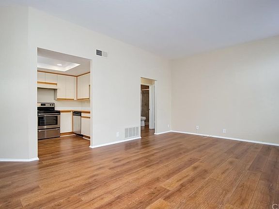 Beautiful, quiet, upper-level Hillcrest Village gem features 1 spacious bedroom and a large den (almost another bedroom), large walk-in closet, high ceilings, plantation shutters, single detached garage, laundry room in unit, and more! Upgrades include gorgeous remodeled bathroom with custom vanity and shower, brand-new appliances in kitchen, High-end wood flooring allover, designer paint, recessed lighting, and more. Large den could be used as a 2nd bedroom or office, and has sliding door with access to patio. Hillcrest Village community is conveniently located close to Saddleback College, Medical Center, The Shops at Mission Viejo, parks, and freeways in the heart of Mission Viejo. Association includes private pool and spa and access to the beautiful Mission Viejo lake.