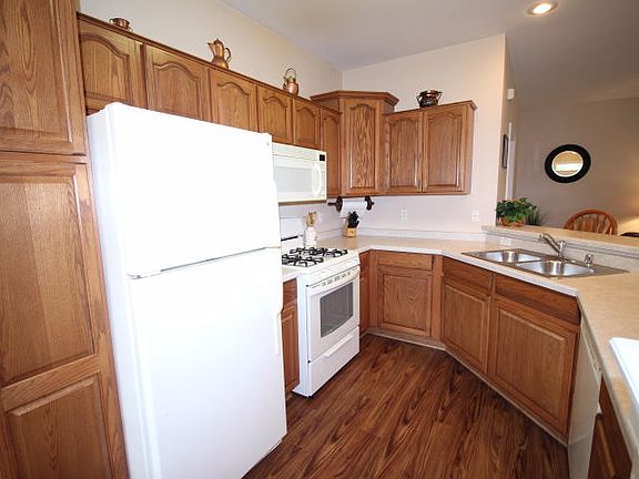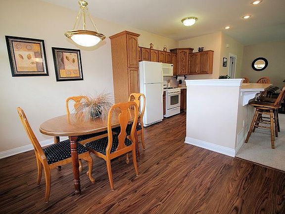 Priced to sell! Stunning 2BR ranch style condo w/full basement. Int features a grand entrance into the dining/kitchen area w/breakfast bar, appliances & brand new laminate wood flooring. Living room has new carpet & a large sliding glass door that opens to your private patio. Master bedroom has a private bath & walk-in closet. LL consists of bright fullsize window & plumbed for a 3rd bath just waiting to be finished. Main floor laundry & 2+ car attached garage. Private entrance from garage or sidewalk.