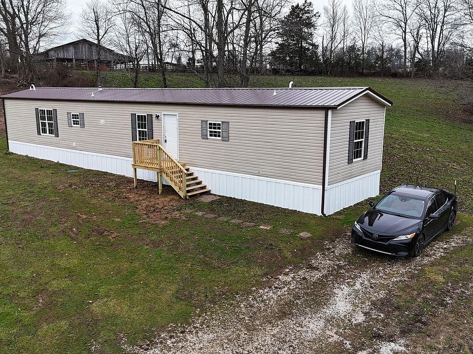 This charming single wide mobile home offers a perfect blend of comfort and convenience with its three bedrooms and two baths, providing ample space for relaxation and privacy. Step inside to discover the inviting ambiance created by fresh paint throughout and new plush carpeting underfoot, offering a canvas ready for your personal touch. Embrace peace of mind with a brand new metal roof ensuring durability and longevity for years to come, while newly installed entry steps at both the front and rear of the home welcome you with ease and style.