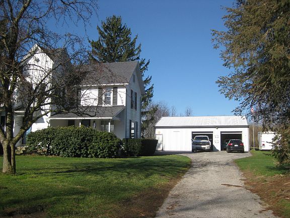 Very nice quiet country location in this attractive 2 story home on approximately 2 acres. Large detached 3 plus garage/pole barn measuring 32 x 40 feet with concrete floor and 110/220 service. Enjoy privacy and space in this home with lots of potential.
