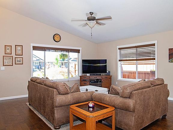 This wonderful home is immaculate inside and out and features a spacious open floor plan just perfect for entertaining or easy living with vaulted ceilings and engineered hard wood flooring in main living area, 3 bedrooms, 2 full baths, and 1595 sq.ft. The master suite has a walk-in closet, a beautiful bathroom with a double sink vanity, custom tile backsplash, granite counters, walk in shower, and privacy toilet. In the stylish kitchen you will also find granite counters, custom tile back splash, a convenient kitchen island, gorgeous cabinetry for tons of storage, a walk in pantry and stainless steal appliances. The back yard is fully fenced and has a covered patio for when you feel like relaxing or BBQing, or just hanging out. This home is a must see!!