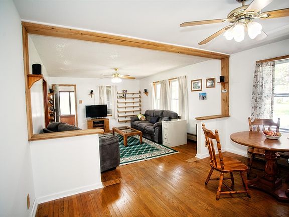 This 3 bed 1 bath home has LOADS OF UPDATES. Newer windows, new flooring in kitchen and bathroom. New METAL ROOF, and original HARDWOOD flooring throughout. All plaster has been taken down and drywall in place. The attic space would be great for a second floor room or tons of storage. The basement is dry and would be a great place for entertaining, as it is partially finished. The basement area also has a great laundry area. Outside brings a nice 1/2 ACRE yard which includes a 36x26 TWO STORY POLE BARN. The pole barn is equipped with a TROLLEY, for those people that like to work on cars/motors. There is also 100 amp service in the pole barn. The 4 foot wide stairs are nice and wide going to the second floor which has plenty of natural light and an exhaust fan. There is another out building that was used as a play house, but could be used for a shed or possibly a chicken coop.