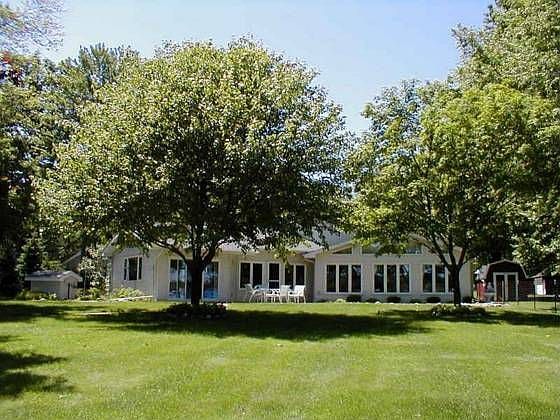 Contemporary Home on 2080 acre all sports Secord Lake, in area of nice homes. An acre of landscaped property,level to the water, curving sidewalk to the waterside deck & fire pit with sandy beach. Inviting foyer entry with 18 ft cathedral ceiling, skylight that opens. Great room has cathedral beamed ceiling,full wall windows with oak trim,stone wall gas log fireplace with healalator, Kitchen all remodeled 2012 with new cabinets,granite counter tops, pass through to foyer, walk in pantry This home has porcelain tile through out, custom drapes. Master suite with door wall to the lake side, walk in closet,spa tub & shower,built in desk area or wet bar. Attached 2 1/2 car finished garage & 28 x 42 garage with 1/2 bath & insulated open loft that could be finished for guest area. 10x16 shed, underground sprinkler system.