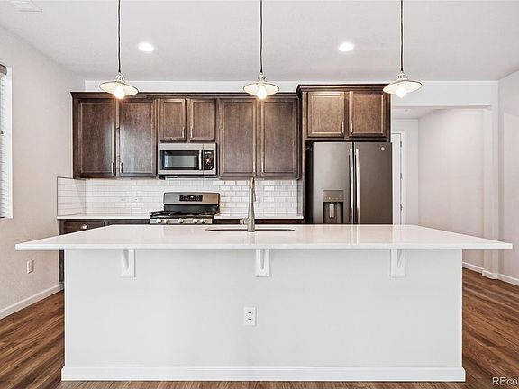 Welcome to 27862 E 9th Drive, a sophisticated single-level residence nestled in Aurora’s coveted Sky Ranch community. This meticulously maintained 3-bedroom, 2-bathroom home spans 1,726 square feet and offers a harmonious blend of modern luxury and eco-conscious living. Gourmet Kitchen: Culinary enthusiasts will appreciate the gourmet kitchen, equipped with high-end Bluetooth-enabled Café appliances, sleek countertops, and ample designer cabinetry, making it a chef’s dream. Sustainable Living: The home comes with an advanced solar panel system, promoting energy efficiency and reducing utility costs, aligning with sustainable living practices. Elegant Interiors: Solid surface flooring flows seamlessly from the entrance through the main living areas, complemented by an open-concept layout that enhances the sense of space and light. Spacious Bedrooms: Three generously sized bedrooms provide comfort and tranquility, with the primary suite offering a private retreat featuring a luxurious en-suite bathroom. Outdoor Oasis: The beautifully landscaped backyard offers a serene setting for relaxation and entertainment, perfect for enjoying Colorado’s picturesque sunsets. Situated minutes from DIA, E-470, and I-70, this home offers unparalleled convenience for commuters and travelers alike. Experience the perfect balance of luxury, functionality, and sustainability in this exceptional Aurora residence.