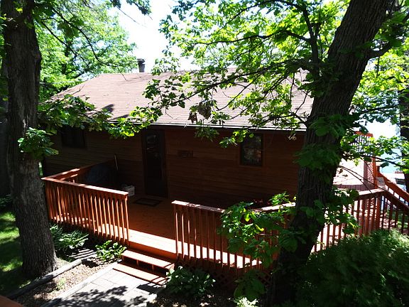 Beautiful open floor plan, hardwood floors, ceramic tile, patio, 80ft of lake shore, lot across the street, center island, wrap around deck to enjoy the view.