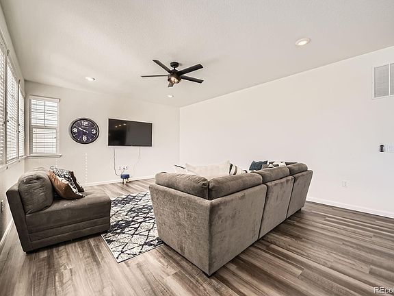 Welcome to this beautifully maintained Southshore home offering an ideal blend of comfort, style, and functionality. The Aster floor plan by Century Communities sounds fantastic! With a Full unfinished walkout basement. The location backing to open space ensures beautiful views, making it a serene living environment. Key features like the front porch, main floor study with French doors, and a half bath with LVT flooring add to its charm. The main level showcases LVT floors throughout, enhancing the modern aesthetic of the home. The family room, complete with a fireplace, creates a cozy gathering space, while the gourmet kitchen, equipped with maple cabinets, quartz countertops, and stainless steel appliances (microwave, gas cooktop, double oven, refrigerator), is a dream for any home cook and walk-in pantry. Upstairs, you'll find four bedrooms and Loft, including a guest bedroom with its own bath and two secondary rooms sharing a full bath. The primary bedroom is a true retreat with a walk-in closet and a luxurious 5-piece bath, complete with quartz countertops and tile floors. With 9-foot ceilings on all floors and numerous upgrades, this home is ready for move-in. All blinds and ceiling fans staying is a great bonus! Being located in the Southshore Community, close to an elementary school, clubhouse, and pool, adds to its appeal for families. Cherry Creek School District, Minutes from E-470, Aurora Reservoir, Buckley Airforce Base and DIA. Close to The Southlands Mall for Shopping and Grocery Stores.