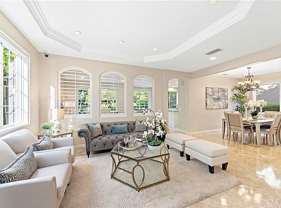 Entertainers Dream Home in Prestigious Laguna Niguel! Nestled within the 24-hour guard-gated community of San Joaquin Hills, this former model home features 5 beds + loft, 3 baths & a 3 car garage. Double door entry leads into the main living and dining areas with marble porcelain tile, fresh paint, recessed lighting, and designer touches throughout! Prepare delicious meals amidst serene backyard views in the kitchen featuring granite countertops, white cabinetry, double ovens, fridge/freezer, center-island with built-in microwave and sunny breakfast nook. The spacious family room features a cozy fireplace and is perfect for relaxing or entertaining. Ideal downstairs bedroom with adjacent full bath can be used as a guest room or home office. Upstairs, unwind in the oversized master suite! Master bath offers dual vanities, large soaking tub, and walk-in shower! Secondary bedroom has been transformed into a dream closet that connects to the master bedroom but can easily be converted back. Two additional secondary bedrooms and loft/BONUS ROOM complete the second-floor accommodations! Unwind in the private backyard (one of the LARGEST in the community) with tropical swaying trees, perfectly manicured landscaping, easy-to-maintain turf grass, and oversized patio with plenty of room to gather. Whole house has been Epiped with transferable warranty! Too many upgrades to list (see supplement). Resort caliber community amenities featuring sparkling pools, various sport courts, and playground. Award-winning schools, a variety of shops and restaurants and the 73 toll road nearby. Your dream home awaits!