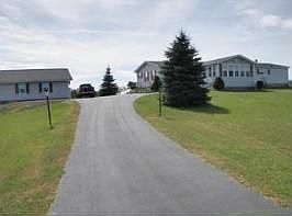 Spacious double-wide ranch with open floor plan. Vaulted ceilings and circular island between living room and kitchen with oak cabinets and pantry. Living room has gas fireplace which is stone. Formal family room in addition to the living room. Unique set up.Sky lights in second full bath, 1/2 bath and laundry room off kitchen. 3 Season large enclosed porch as well as covered porch in back. Master bedroom suite with private bath which includes deep garden tub and separate shower. Tool shed with power. New driveway in 12/08. 8+ acres with spectacular view from hilltop.