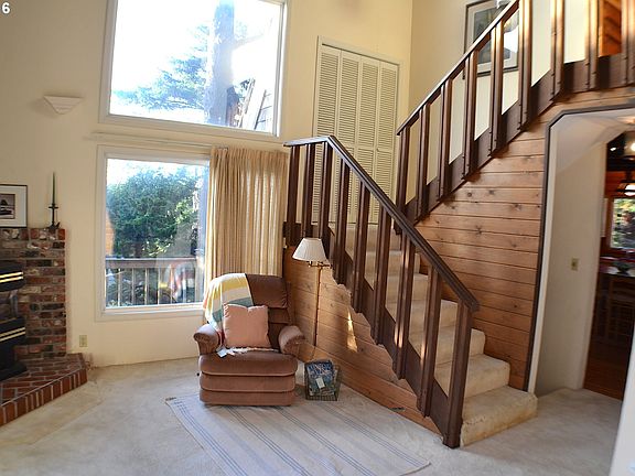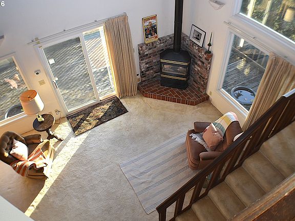 Unique Cannon Beach home on a corner, double lot. High, beamed ceilings and lots of windows give and open and bright feel. A gas stove in the living room and gas fireplace in the den make for cozy winter nights. Three bedrooms and a loft, 2 bathrooms. Detached two car garage with space above for a studio. Spacious southern exposure deck, and mature trees for privacy. One block to the beach.