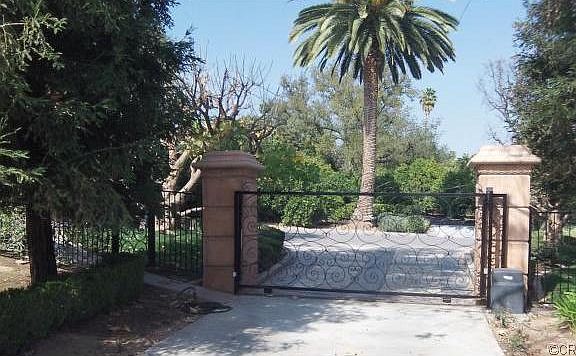 Stunning Private gated Estate, surrounded by historical homes and citrus groves. Walking distance to Poly High School, over $800,000 worth of improvements were made to home and landscaping in 2008, double door entry, beautiful open kitchen with bar stool counter tops, chefs dream butlers pantry, plantation shutters throughout, master bedroom plus one other bedroom downstairs with cedar lined closets, 2 bedrooms plus game room/office upstairs, central vacuum, 4 A/C units in main home, refrigerated Wine Cellar, open beam vaulted ceilings, wood floors, lime stone counter tops, 3 italian marble fireplaces, countless french double doors exiting home under patios, crown moulding throughout, 3 car garage and lots of parking space with circular driveway and covered carport, 400 sqft. separate casitas or guest house with separate A/C unit would be 5th bedroom with 3/4 bathroom & kitchenette, private pool & Spa. Many fountains, green grassy areas and fruit trees surround this beautiful Estate ho