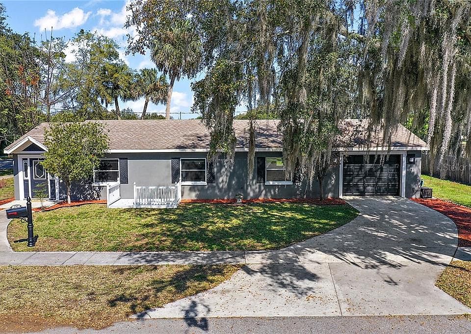 BEAUTIFULLY UPDATED 2/2 MOUNT DORA BUNGALOW WITH BONUS ROOM, GARAGE, AND SUNROOM. What a perfect location! Enjoy being just down the street from popular restaurants, retail stores, Epic movie theater, and just minutes from charming, historic downtown with funky shops, unique dining, parks, full-service marina, and frequent hometown festivals. This .32 acre lot provides room for kids and pets to play! Spacious driveway and 1 oversized car garage with separate 6x16 storage room for a mower and all your lawn equipment! Mature trees, shuttered windows, and a gabled front entry creates nice curb appeal, while the interior is sure to impress with a fresh, updated look. A pleasing neutral color palette flows throughout the living areas, along with low maintenance and attractive tile floors. The bright and spacious living/dining area has wonderful flow into the kitchen, perfect for entertaining. An abundance of beautiful cabinets can be found in the well-appointed kitchen, including storage drawers, a breakfast bar, a cook-top island with storage, stainless appliances, double ovens, and a built-in microwave. Adjacent to the kitchen is a wonderful alcove with a laundry area, storage, and expansive counter ideal for doing homework or as a craft station. The master suite offers a spacious closet and private bathroom with a tub/shower. The guest bedroom shares the full hall bath. There is a great bonus room (no closet) with tons of possibilities--extra sleeping space, home office, yoga study, kid's playroom, etc. And, there is also a sunroom with loads of windows and a door to the backyard. The sunroom allows you to enjoy the feeling of the outdoors while still enjoying A/C!! The roomy backyard has a sun patio ideal for a grill and plenty of room to lounge and visit with friends. This is a beautiful, affordable home in a super-convenient location!